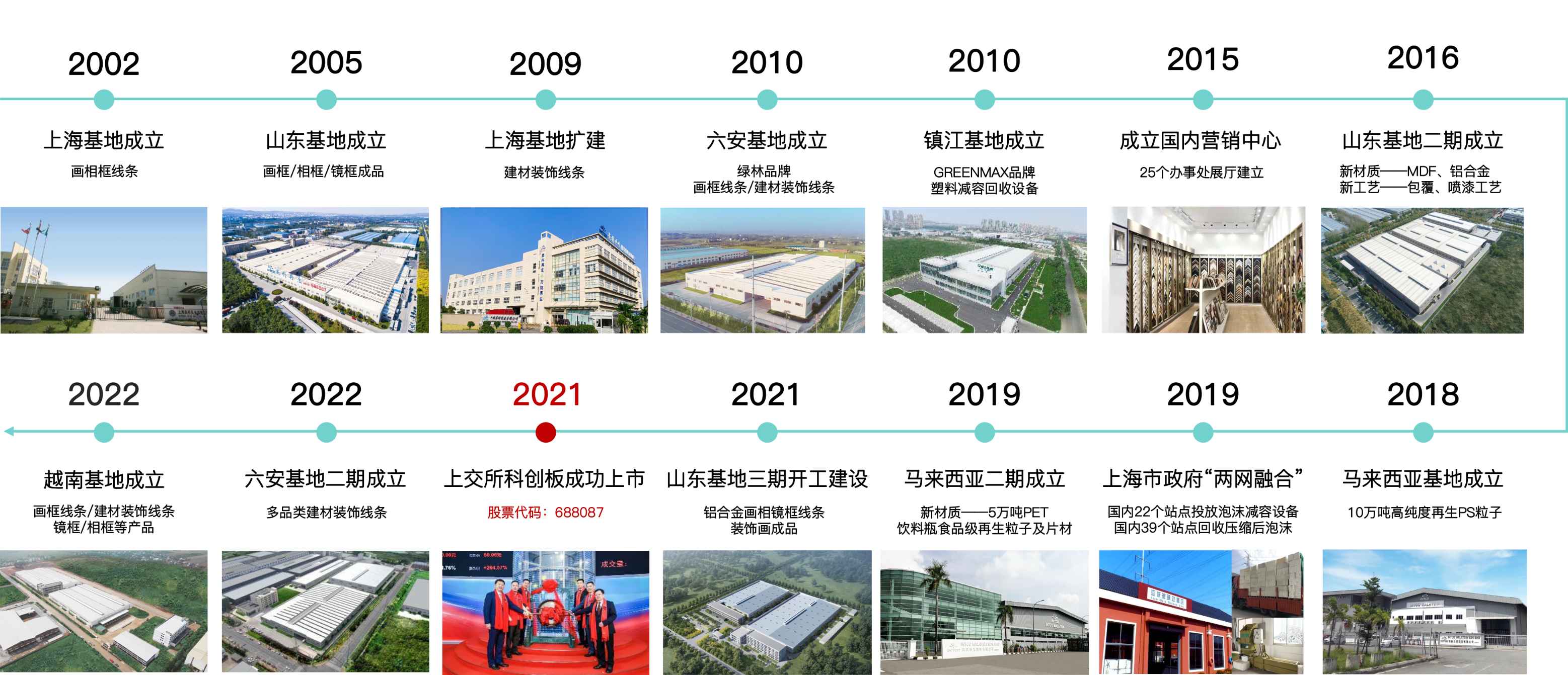 公司自主研发设计的GreenMax泡沫减容增密回收设备,可将PS泡沫塑料体积缩小至原来的1/50和1/90,帮助境内外50多个国家的400余个回收点大幅度提高回收效率, 降低回收运转成本,建立了全球回收网络。英科再生具备每年回收再利用约10万吨PS 泡沫塑料的能力,运用先进塑料再生技术和再生塑料制品开发技术,实现塑料的高值化再生利用, 形成循环经济模式。主营产品有泡沫减容增密回收设备、塑料再生粒子、环保画相框线条、环保成品框、环保室内外装饰材料, 产品远销海内外120多个国家和地区。